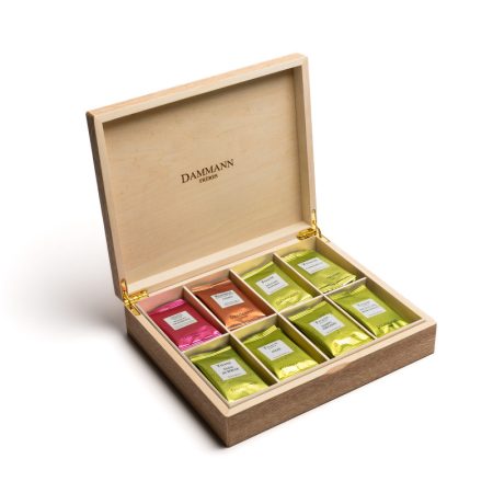 Coffret en bois réunissant 42 sachets de 4 thés et 2 infusions.