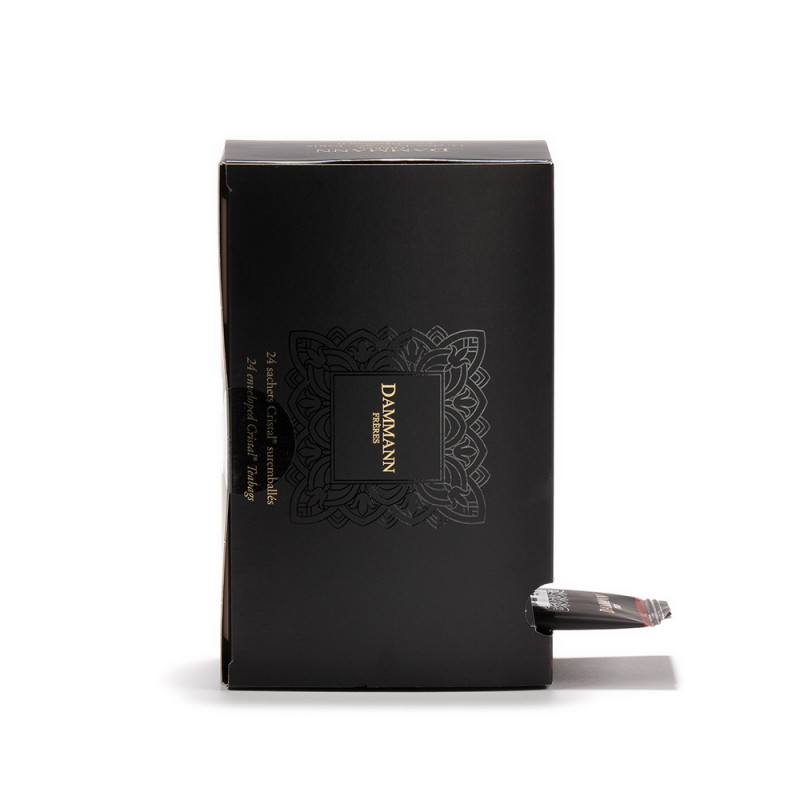 Un mélange de thés noir, aux notes intenses de caramel. à accompagner de cakes ou de tartes aux fruits à l’occasion d’un goûter. Boîte de 24 sachets Cristal® suremballés. Poids net : 48 g