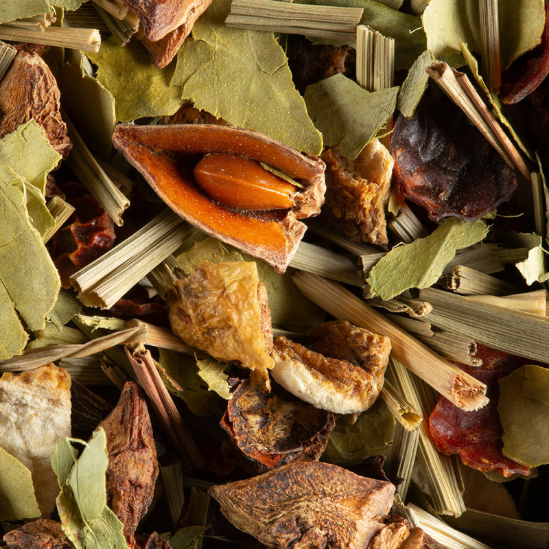 Citronnelle, badiane et cynorrhodon sont ici audacieusement associés dans une infusion aux parfums frais, vifs et fruités du citron et de la clémentine. Mêlé également à la note douce et boisée de la vanille, cette infusion délivre une tasse ronde et délicieusement sucrée évoquant une friandise de sucre cuit.